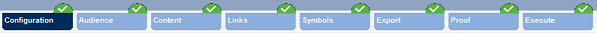 Dark blue indicates the currently selected tab. When you complete each step, the stripes are replaced with light blue and a check mark appears in the tab. When you have completed all the steps, the tabs appear like this: