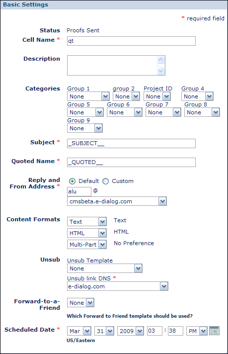 The Content Formats fields override the e-mail format (MIME type) preferences stored in the master database for all cell recipients. For example, you can choose to send a Multi-Part message to all Text recipients who may have upgraded to an HTML-compatible e-mail application. Do not, however, choose to send an HTML-only message to recipients with a text preference. The message would appear as HTML code in a text-only e-mail client.