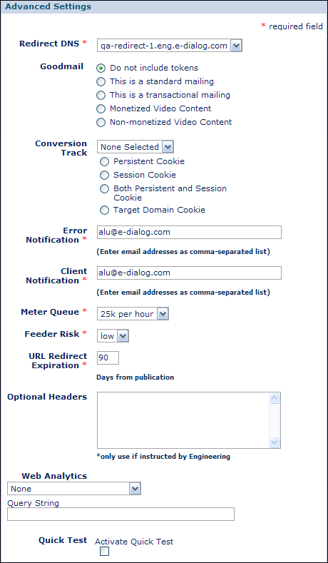 The risk level determines what IP launches the message. A client may already have a private IP, meaning that only their mail is deployed from a particular IP address. Many clients share a handful of IPs (a queue). New clients and risky mailings are deployed from the B queue. Account teams should have direction on which queue to use.