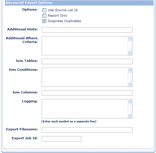 * Indicates a required field. If you have access to the Advanced Export options, contact your account team for instructions.