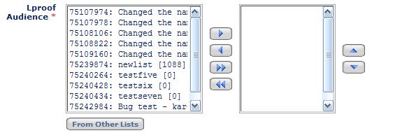 - Move one or more existing audience lists from the left-hand pane to the right-hand pane.