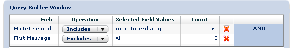 Note: Failure to include a target audience field and a trigger bucket field in the query can produce unexpected and undesirable results. For example, a query that contains an EXCLUDES ALL field with no target audience field creates a dynamic audience list that contains every e-mail address in the Master Database. |