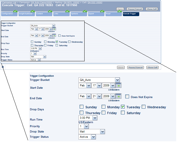 Specifies the day you want the trigger to stop executing. You can check the Does Not Expire box to make the trigger continue indefinitely.
