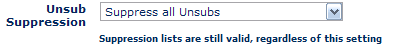 To specify how to handle unsubs, select the appropriate value from the Unsub Suppression drop-down list.