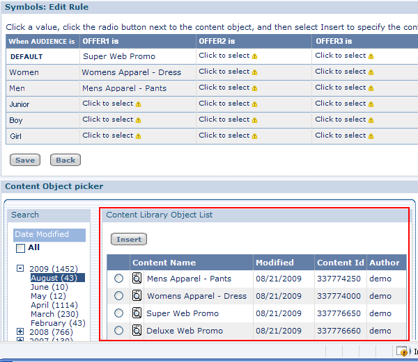Note: Plugin symbols, which let you merge content from a source other than the Master Database, can also require you to specify rules. For example, if you use a plugin symbol named Article Lookup, you might specify that one article appears in the e-mail to females and a different article appears in the e-mail to males. To define a rule: