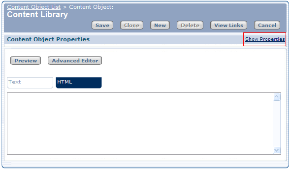 - Enter or copy HTML or text into the Content Library Editor or Advanced Editor.