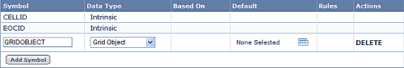 - The Grid Object Symbol displays the name of the grid object in the Default column.