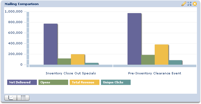 If you choose many mailings, you may have to maximize the chart in order to read it effectively. Maximizing a chart expands it to fill the entire display area and hides any other charts.