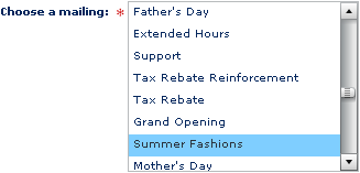 filter the mailing list.Some charts require that you select one or several mailings from a list. If the mailings you want to select are not in the list, or if the list is too long to find the mailings you want, you change the scope of the list.