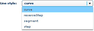 Curve The default. Draws curves between data points as shown in the example above. reverseStep Draws lines as horizontal and vertical segments. At the first data point, draws a vertical line, and then a horizontal line to the second point. Repeats this for each data point.