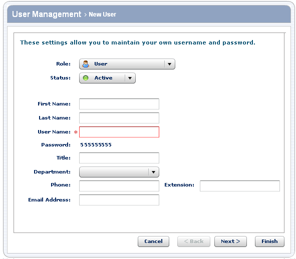 For most users, you select User as the role. However, if you want the user to be able to create and update users, assign them to the Domain Administrator role.