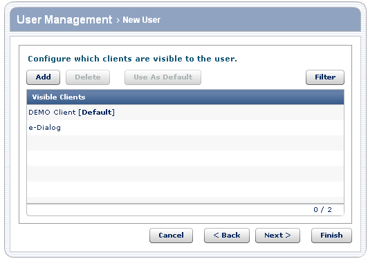 Typically, you make one client visible to a user; however, you can make multiple clients visible to a user. All of the clients in the list are visible to the current user.