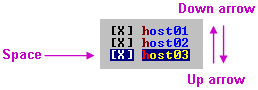 In a list dialog, use the up and down arrow keys to highlight items, then use the space bar to select the items, marking them with an X. Some list dialogs allow you to select multiple items. when you have finished selecting items, press Return. |