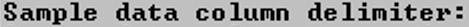 Enter the single character used to delimit column values in the sample data file. The default (vertical bar) is the delimiter used in the sample data files described in the Quick Start. See the COPY command in the SQL Reference Manual for details about specifying a delimiter.
