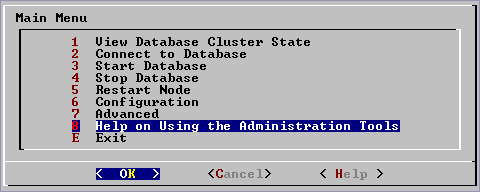 Most of the online help in the Administration Tools is context-sensitive. For example, if you up the use up/down arrows to select a command, press tab to move to the Help button, and press return, you get help on the selected command.